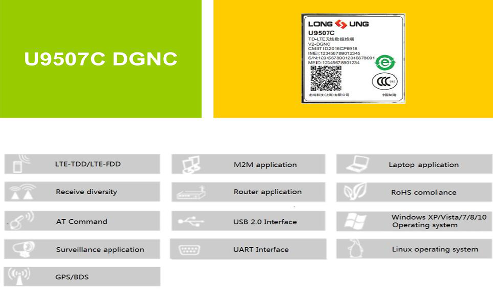 U9507C DGNC 除了给予高速数据接入,还给予短信、彩信、电话薄、语音通话等功能,并能够被用在 CPE、